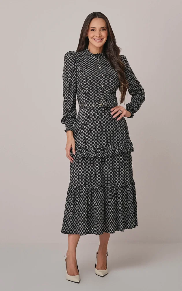 Vestido Maxi Midi com Cinto Encapado Valeria Preto- Tata Martello